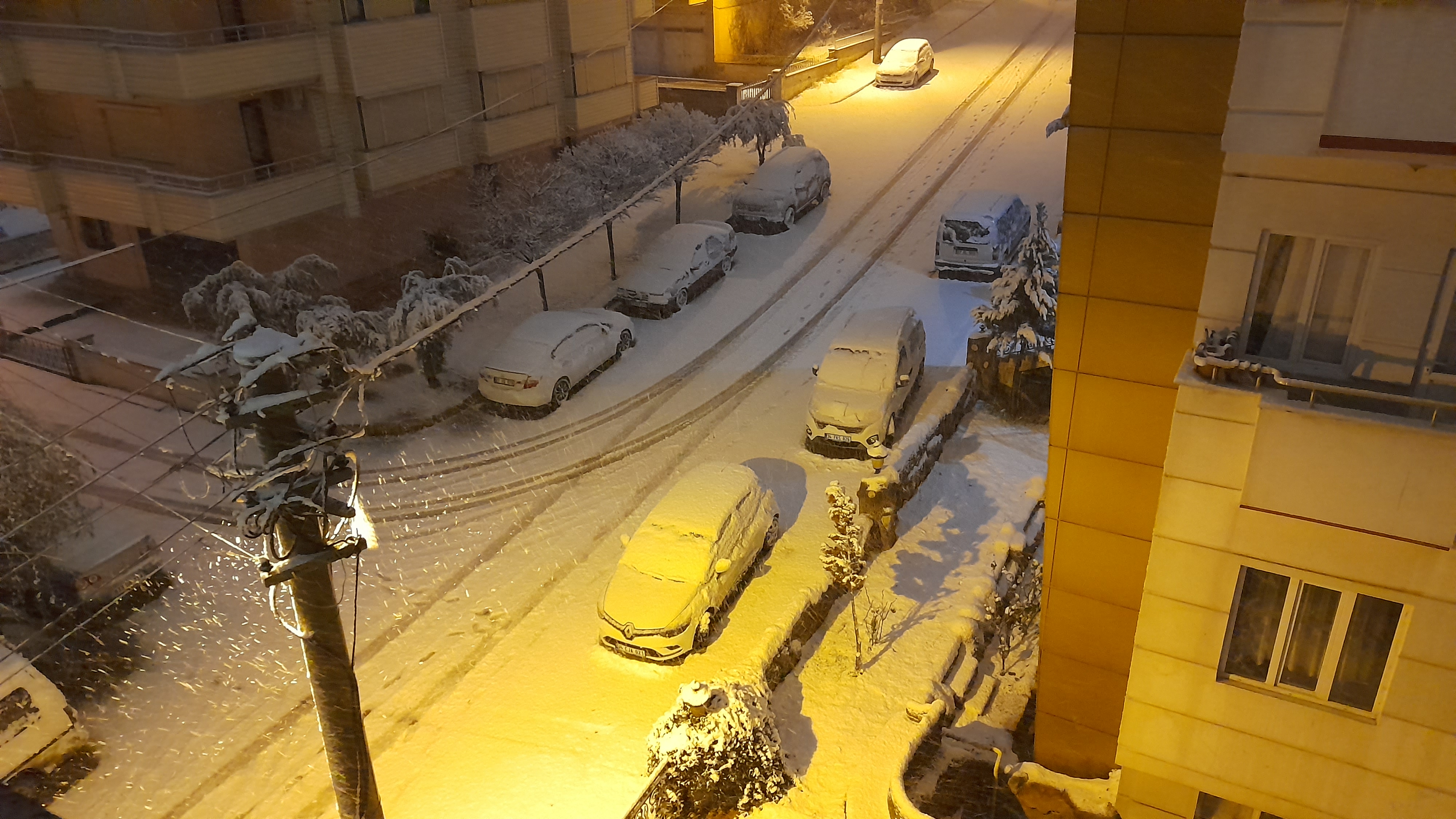 A couple days before the earthquake, we had the first snowfall of the season. I took this picture on Friday morning, but it snowed every day since, so this is what my street would have looked like in the minutes just prior to 4:17 AM when that first earthquake struck. Obviously, I was sleeping at the time, but I went from asleep to instantly up and alert in a heartbeat. You could hear an incredibly loud rumbling almost like the sound of an avalanche and my building was very heavily rocking. I immediately went to the nearest doorframe because I don’t trust my plastic table to protect itself, let alone me. As I was standing there, I kept saying, “Oh Jesus. Jesus, I’m ready. I’m ready.” I honestly did expect at any moment for my building to collapse and to meet God face to face. Those first tremors lasted about a minute and a half which is a seeming eternity when experiencing it. While everything was shaking, you could hear glass shattering and some plaster falling in the stairwell and my windows were thrown open. I came away from this with a significant gash on my head, but I honestly don’t remember anything hitting me. When the tremors stopped, I went outside joining most of the building which had already left. Here are some videos from other friends who experienced the same thing in other parts of the city.